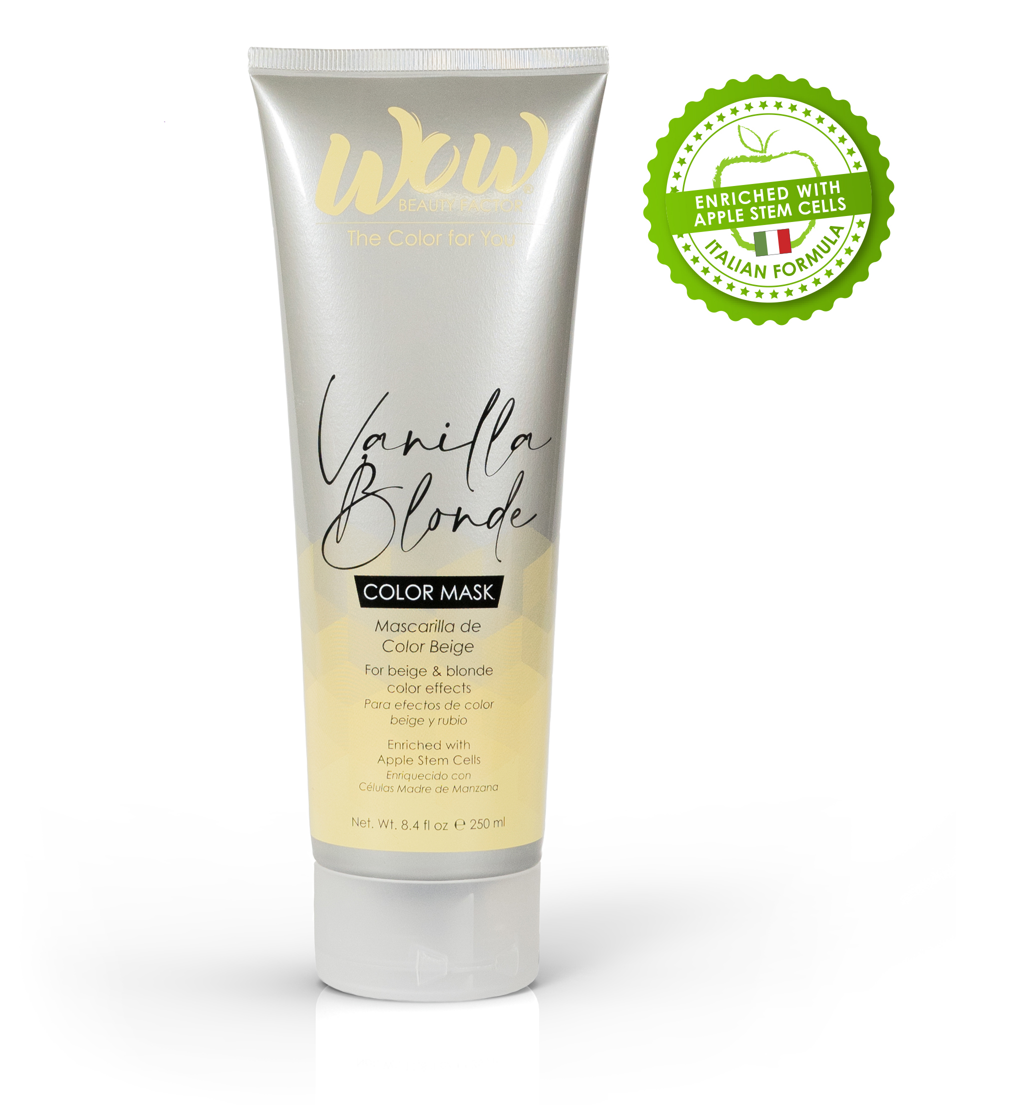WOW VANILLA BLONDE COLOR MASK neutralizes and shades color in bleached hair, highlighting beige, blonde and golden tones. Generates excellent conditioning and detangling.